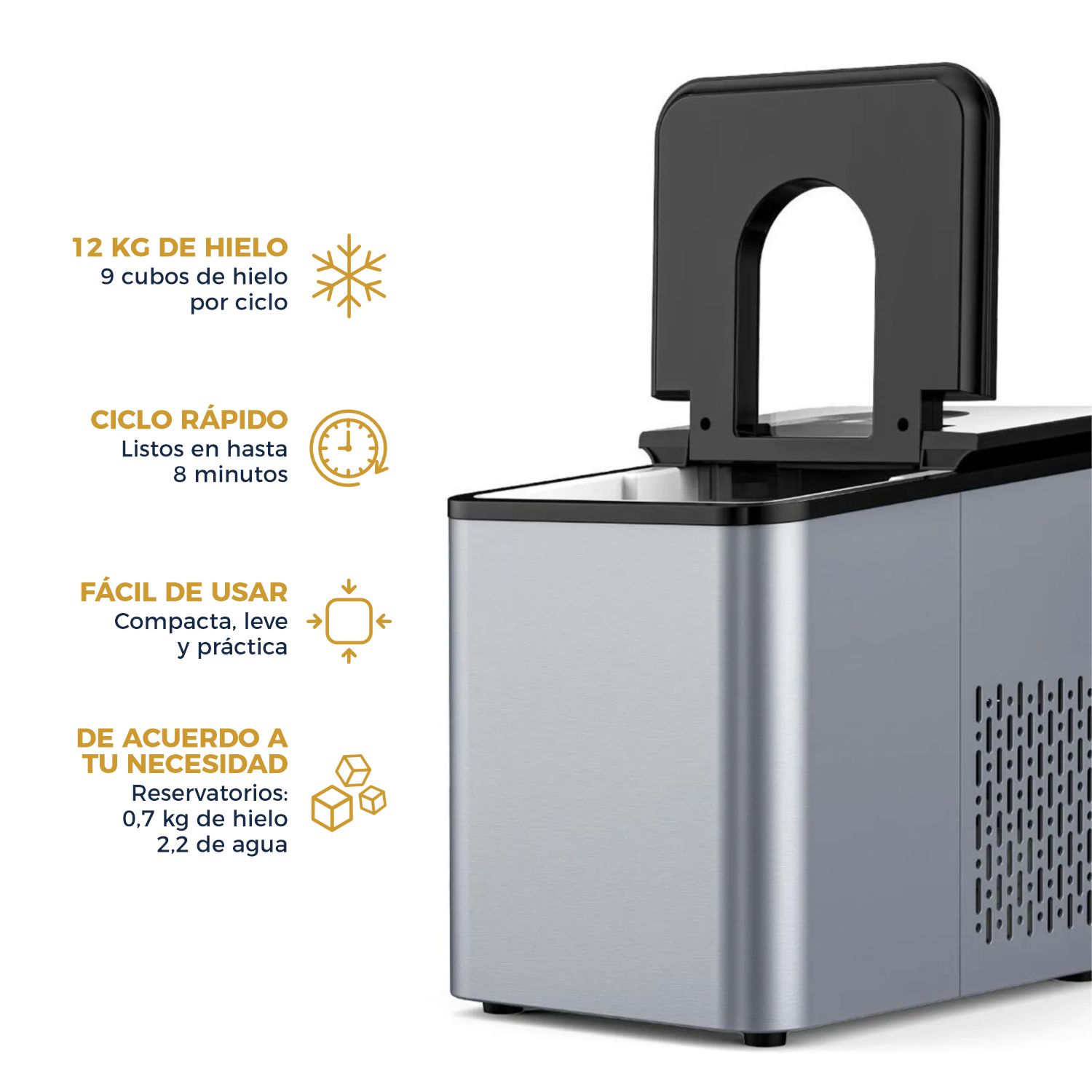 • Duración del ciclo de producción de hielo: 8 minutos