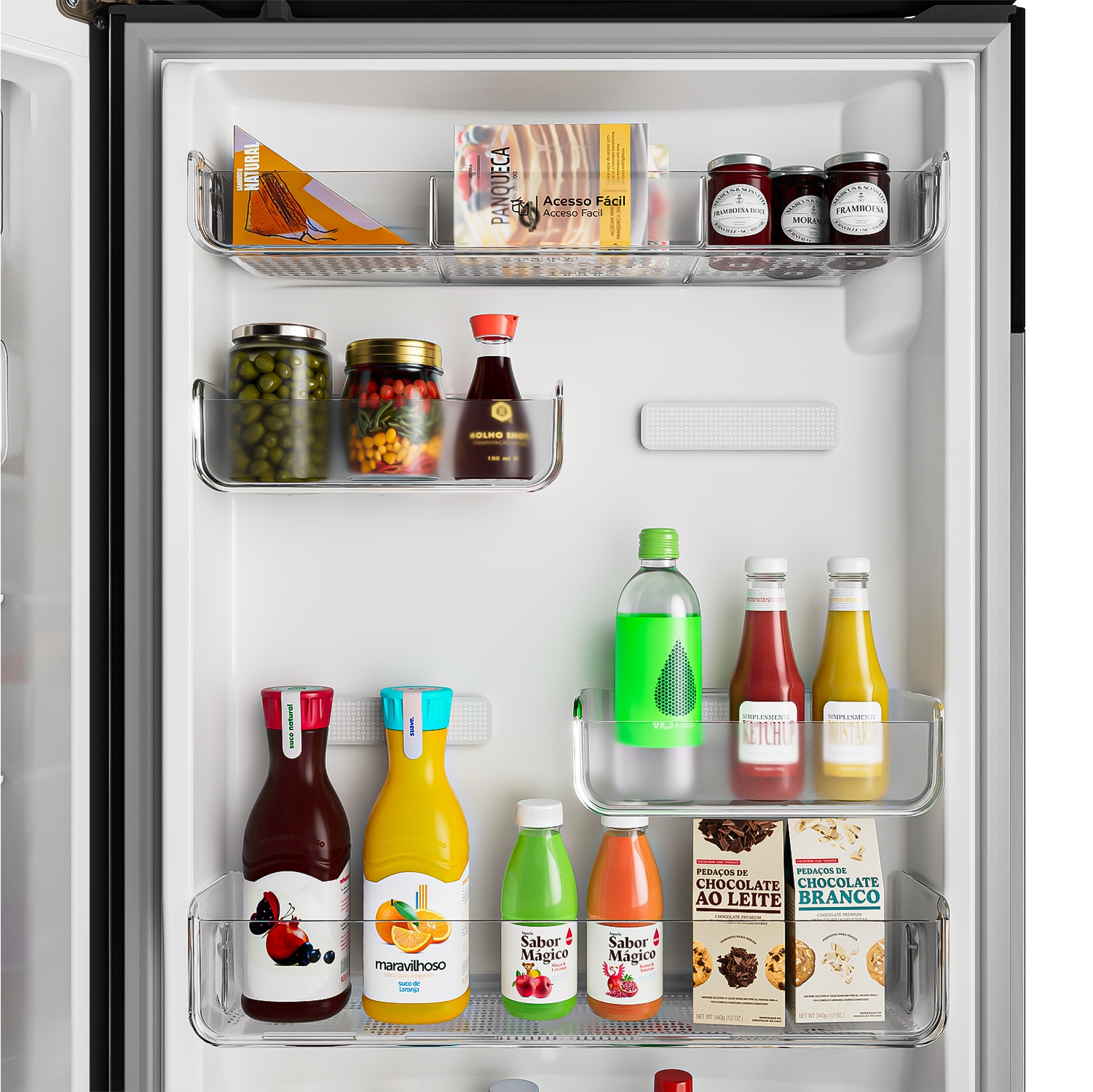 • Espacio flex: puerta con compartimientos ajustables para que puedas organizar alimentos y bebidas a tu manera.